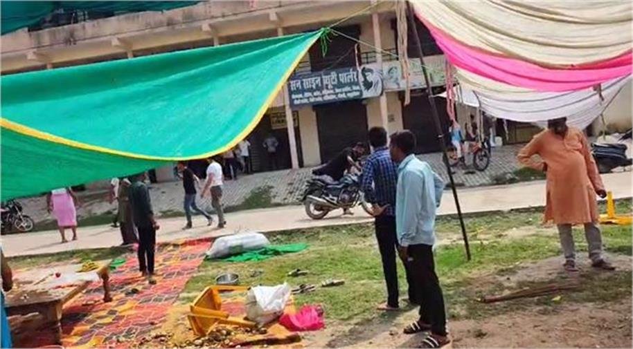घटना का वीडियो सोशल मीडिया पर वायरल हो गया है, जिसमें साफ दिख रहा है कि युवक तलवार, चाकू और डंडे लेकर हंगामा कर रहे हैं। उत्पात के दौरान पंडाल का एक हिस्सा भी गिर गया, जिससे वहां मौजूद लोग दहशत में आ गए।