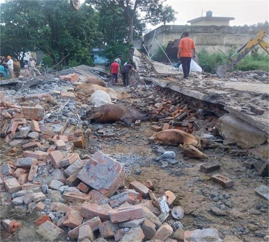 हरियाणा: होशियारपुर के कस्बा हरिआना में शुक्रवार तड़के एक दर्दनाक हादसे में करीब 35 गायों की मौत हो गई। जानकारी के अनुसार, यह हादसा देर रात करीब 2:30 बजे हुआ, जब गौशाला की छत अचानक गिर गई। उस समय गौशाला के भीतर लगभग 42 गायें मौजूद थीं, जिनमें से अधिकांश मलबे में दब गईं।