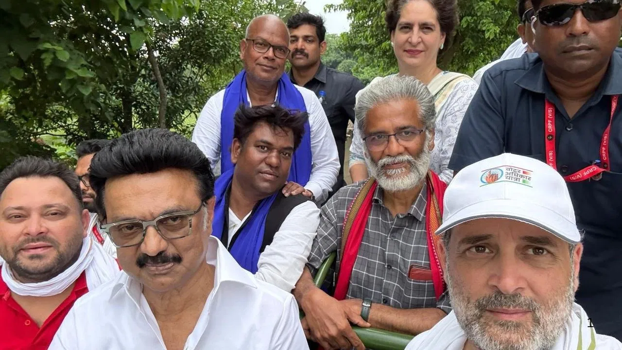 कांग्रेस के नेतृत्व में बिहार के SIR के खिलाफ शुरू की गई वोटर अधिकार यात्रा में बुधवार को तमिलनाडुके सीएम एमके स्टालिन शामिल हुए. मुजफ्फरनगर की रैली को संबोधित करते हुए उन्होंने कहा कि बीजेपी ने चुनाव आयोग को कठपुतली बना दिया है. उन्होंने कहा कि मतदाता सूची से 65 लाख वोटर्स के नाम हटाना आतंकवाद से भी ज्यादा खतरनाक है.वहीं राहुल गांधी ने कहा कि गुजरात का मॉडल ही वोट चोरी का मॉडल है.