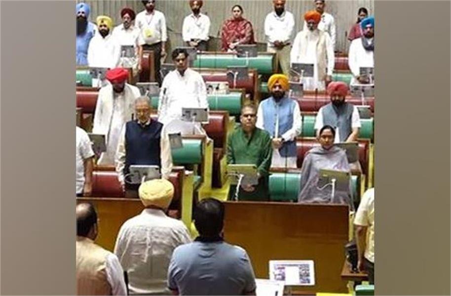 पंजाब विधानसभा के विशेष सत्र आज शुरू हो गया है। सदन में कार्यवाही आज सुबह 11 बजे शुरू हुई, जिसमें सबसे पहले दिवंगत आत्माओं को श्रद्धांजलि दी गई। जिन दिवंगत आत्माओं को श्रद्धांजलि दी गई, उनमें सरदार हरमेल सिंह टौहड़ा (पूर्व मंत्री), रघुबीर सिंह, भानु प्रताप सिंह मनकोटिया (लेफ्टिनेंट कर्नल), शहीद दलजीत सिंह (एएलडी), शहीद रिंकू सिंह (लांसनायक), शहीद प्रितपाल सिंह (लांसनायक), हरमिंदर सिंह (सिपाही), जसविंदर सिंह भल्ला (अभिनेता कॉमेडियन) और चरणजीत आहूजा (संगीतकार) शामिल हैं।