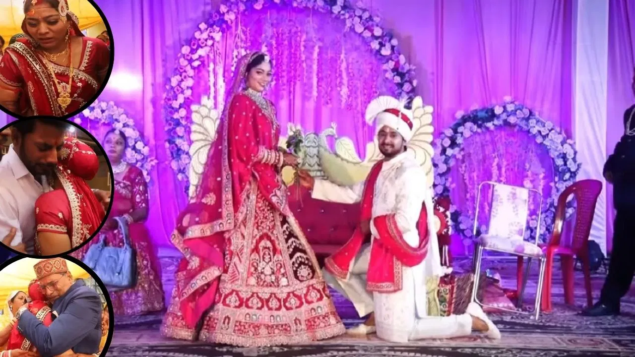 शादी की रस्में संपन्न होने के बाद दुल्हन अपने मायके से ससुराल के लिए विदा होती है. इस दौरान सोनम अपने परिवार के लोगों से लिपटकर रोती है.