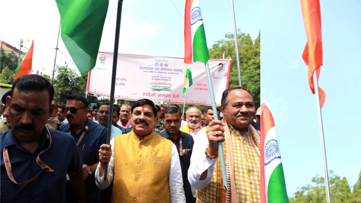 भोपाल। मध्यप्रदेश के मुख्यमंत्री डॉ. मोहन यादव ने 25 सितंबर को रवींद्र भवन में राज्य स्तरीय स्वदेशी जागरण सप्ताह का शुभारंभ किया। इस अभियान की शुरुआत मध्यप्रदेश जन-अभियान परिषद और स्वदेशी जागरण मंच ने की है। इस मौके पर सीएम डॉ. मोहन ने हाथ में तिरंगा लेकर रैली भी निकाली। इस रैली में करीब 300 लोगों ने हिस्सा लिया।