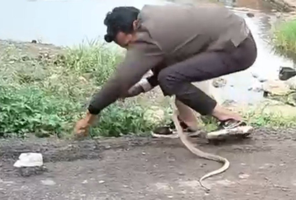 भोपाल। मध्य प्रदेश की राजधानी भोपाल में ओल्ड बेनज़ीर कॉलेज ग्राउंड के पास का एक हैरान करने वाला वीडियो सोशल मीडिया पर तेज़ी से वायरल हो रहा है। इस वीडियो में एक युवक सड़क किनारे सांपों के साथ करतब दिखाता नज़र आ रहा है। शुरुआत में युवक बेखौफ अंदाज में जहरीले सांपों को हाथ में लेकर उन्हें नियंत्रित करने की कोशिश करता दिखा, लेकिन कुछ ही सेकंड बाद यह खेल जानलेवा हादसे में बदल गया।